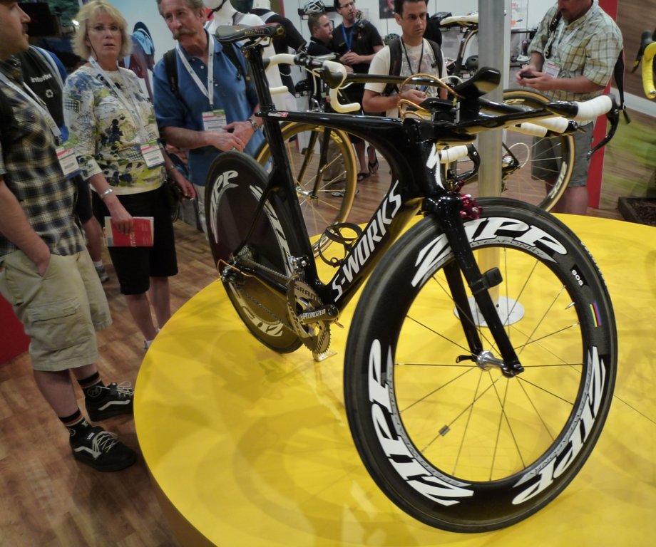 Andy Schleck's bike; note the loong stem and the set back seat post with the saddle pushed all the way back!